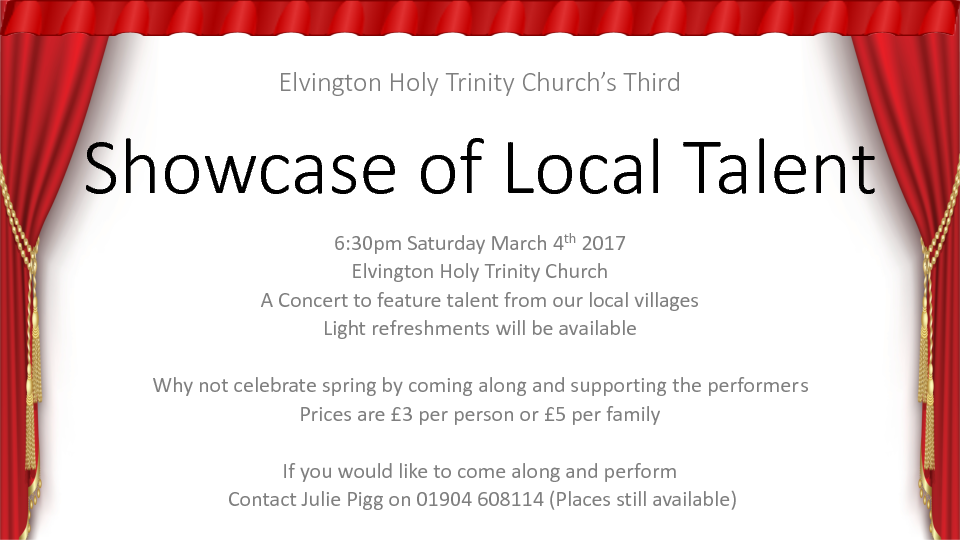 The third Elvington Talent Concert - for some, an opportunity to perform, for others a wonderful concert to enjoy.